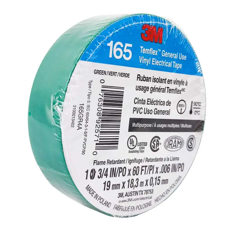 CINTA AISLAR 19 MM X 18 MT VERDE 165 TEMFLEX