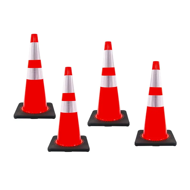CONO DE PRECAUCIÓN 71 CM BASE NEGRA JGO 4 PIEZAS