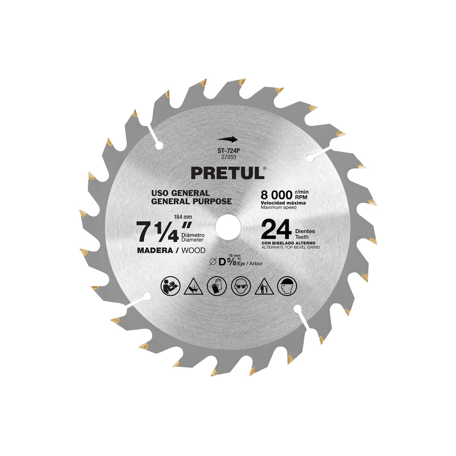 Disco Sierra 7-1/4' para Madera, 40 Dientes, Centro 5/8', Ideal para Madera de Alta Densidad, Pretul Clave 27056