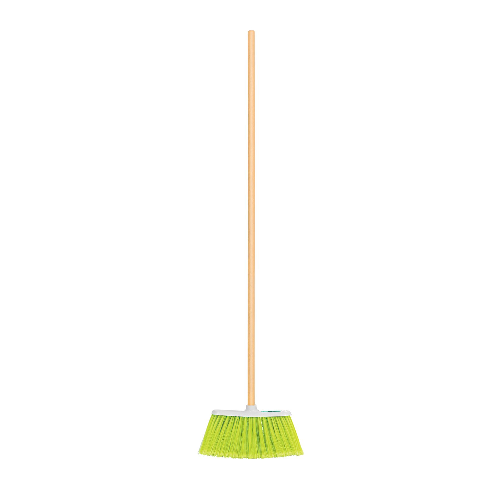 Escoba grande tipo cepillo, cerdas de PVC, bastón de madera, opción robusta para áreas de alta demanda de limpieza, KLINTEK, clave 57055.