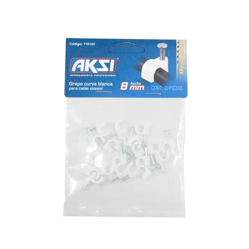 GRAPA CURVA P/CABLE 6 MM. BLNACA C/20 PZS AKZI