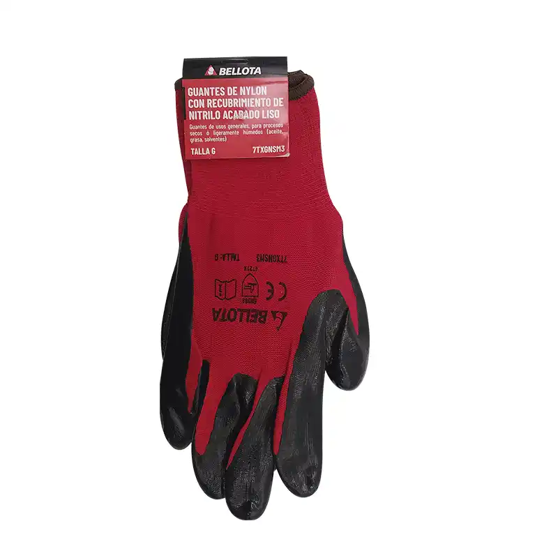 GUANTES NYLON NITRILO LISO ROJO/NGO MED BELLOTA