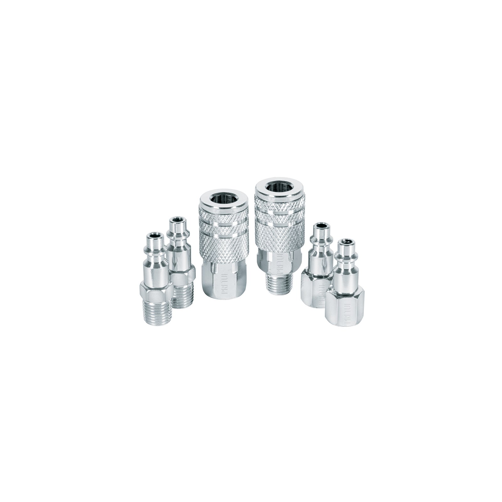Juego de 4 conectores rápidos y 1 cople, de acero, opciones resistentes para conexiones rápidas, PRETUL, clave 27021.