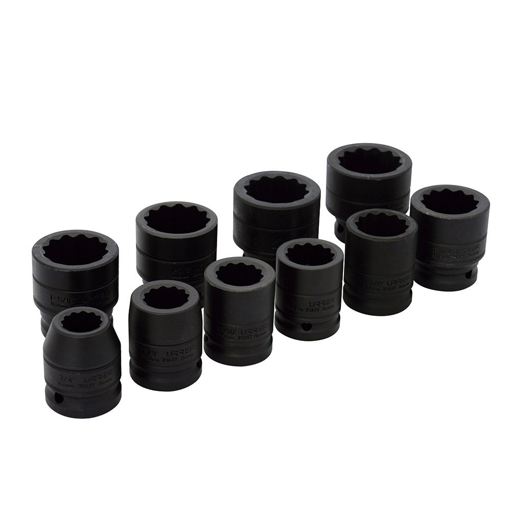 Juego de dados de impacto cuadro de 3/4″, 12 puntas, en pulgadas, 10 piezas Urrea 75101