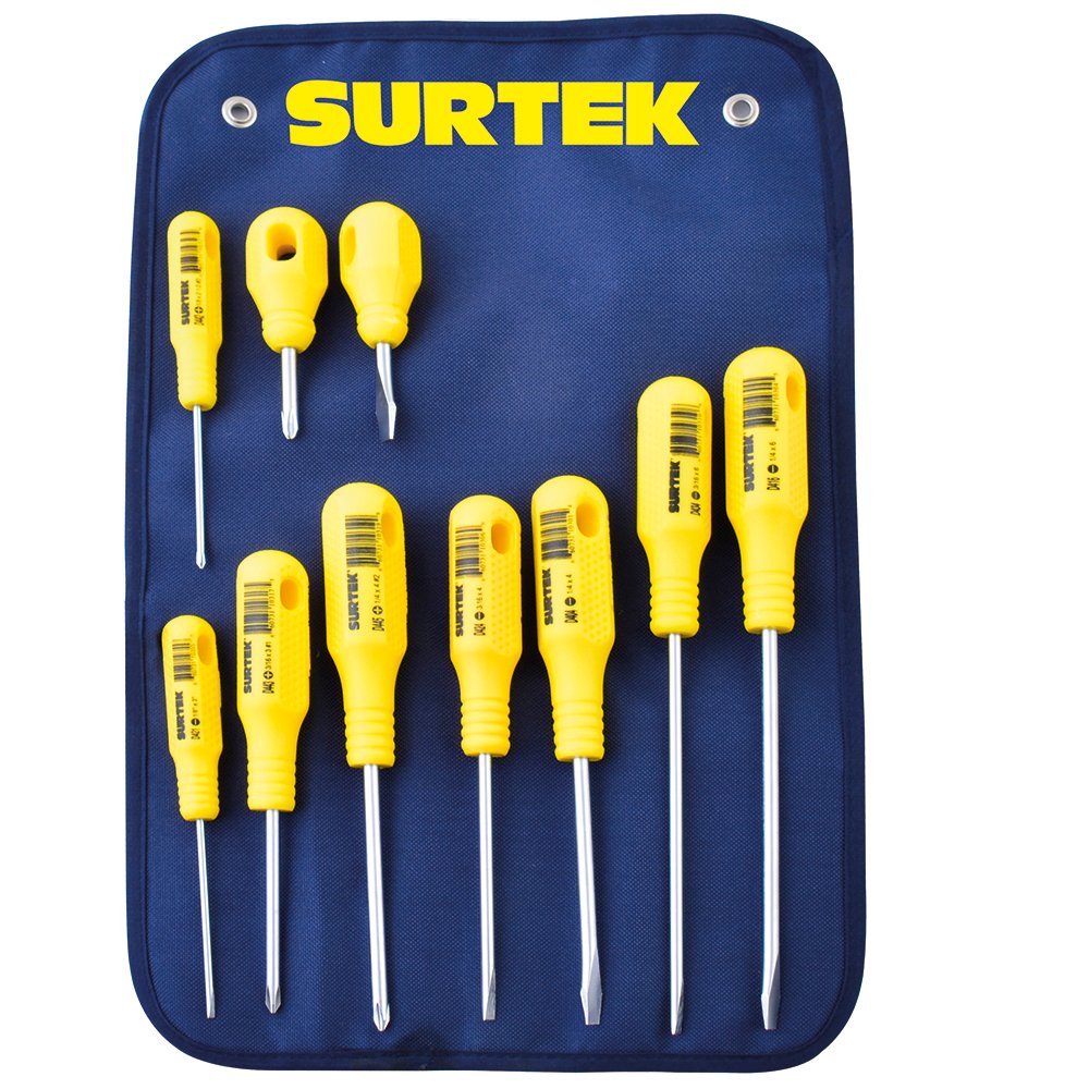 Juego de destornilladores con mango amarillo combinados, 10 piezas Surtek D400C