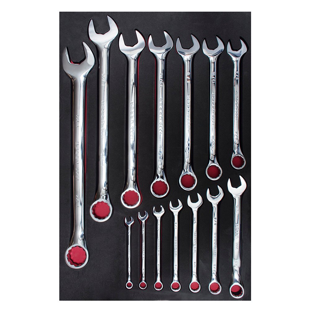 Juego de llaves combinadas pulido espejo en pulgadas, 14 piezas Urrea CH303