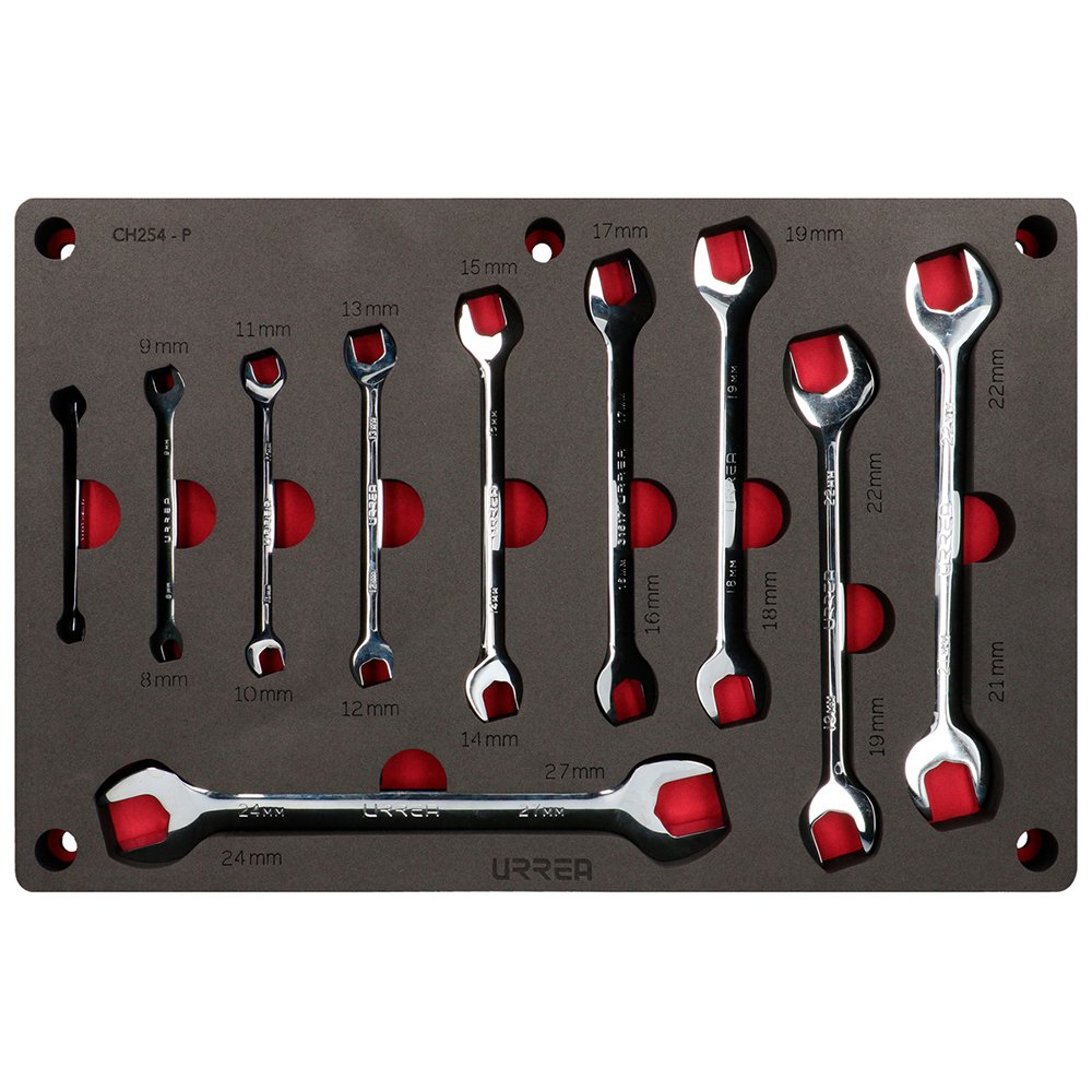Juego de llaves españolas pulido espejo, métricas, 10 piezas Urrea CH254P