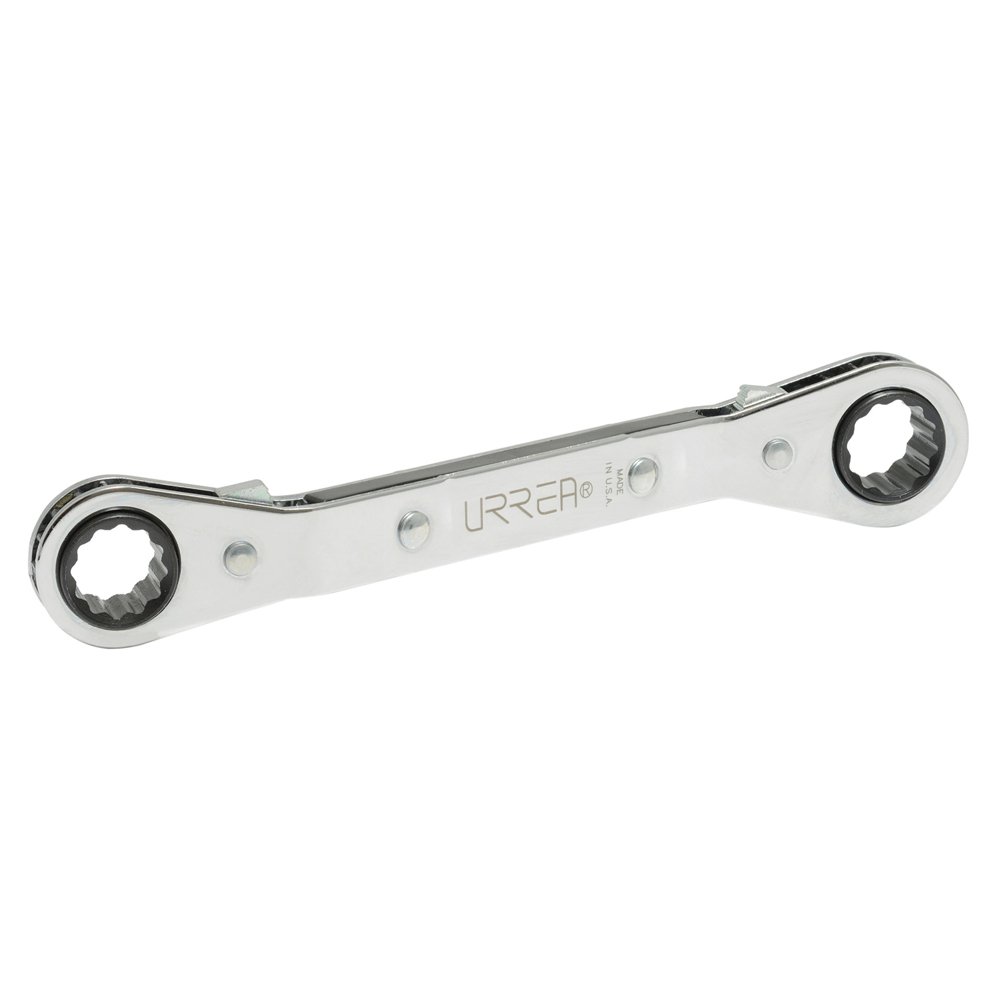Llave de estrías pulido espejo plana de matraca en pulgadas, 12 puntas, 1/4" x 5/16" Urrea 1191