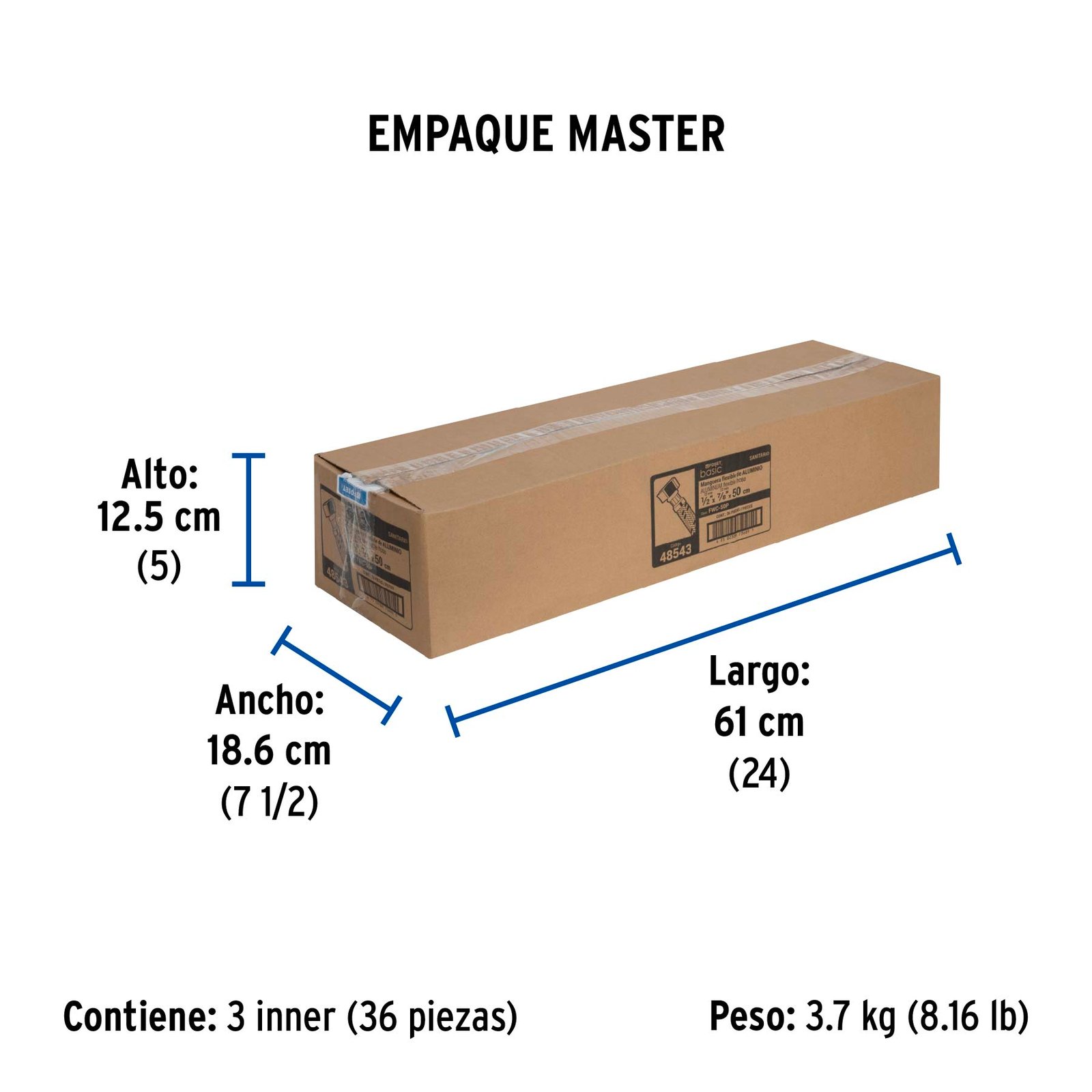 Manguera para WC, Aluminio, 1/2' x 7/8', 50cm, ideal para instalaciones de WC, clave 49126 - FOSET