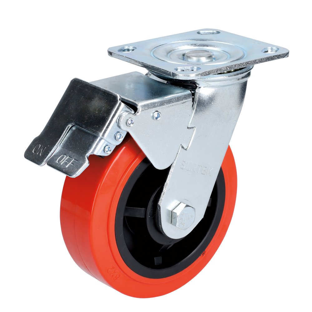 Rodaja de poliuretano rojo giratoria con freno 6″ Surtek RR15B