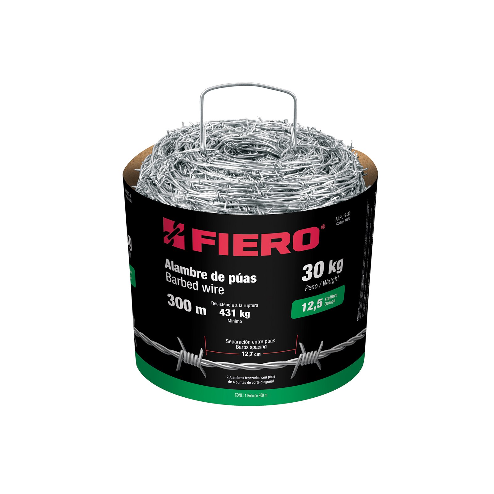 Rollo de Alambre de Púas 300m Calibre 15.5, Resistente y Duradero, Ideal para Cercas y Seguridad, Clave 44887, Fiero