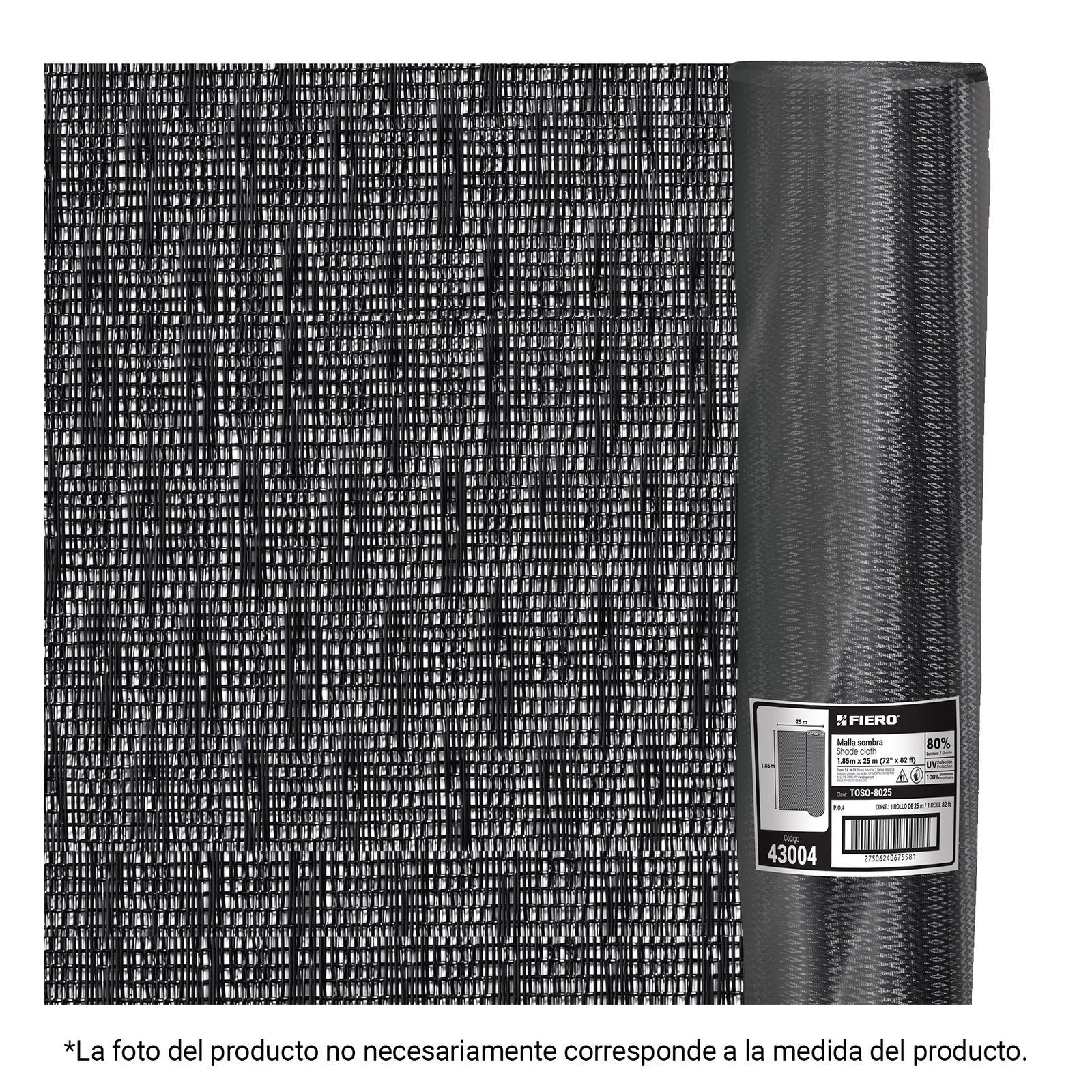 Rollo de Toldo Sombra 80% de 50m x 1.85m, Resistente y Duradero, Ideal para Sombra y Protección, Clave 45845, Fiero